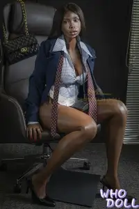 ダークでエキゾチックな魅力にあふれた黒人系ラブドールです。なめらかで艶やかな黒い肌は、光を受けるたびに健康的な輝きを放ちます。 特に目を引くのは、しっかりと引き締まりつつも艶やかな太もも。まるで磨かれたような質感と張りのあるラインが、見る者の視線を一瞬で奪います。161cm、Fカップのボディは、無駄のない引き締まったプロポーションながら、バストやヒップはしっかりと存在感を主張。青色のOL服が、彼女のクールで知的な面を強調すると同時に、黒い肌との鮮やかなコントラストを生み出しています。